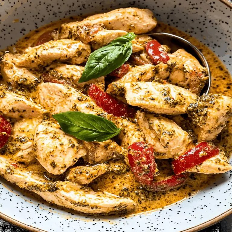 Creamy Pesto Chicken is a quick and elegant dish that features succulent chicken breasts enveloped in a rich, homemade basil pesto sauce. This comforting meal bursts with flavor from fresh garlic and creamy goodness, making it perfect for both weeknight dinners and special occasions. In just 30 minutes, you can serve up a gourmet-quality dish that pairs beautifully with pasta or fresh vegetables, delighting your family and friends.