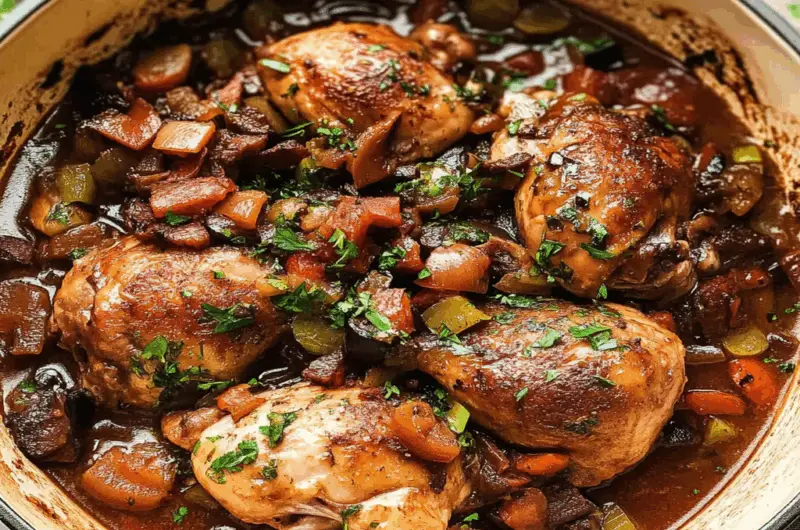 There’s something special about this dish that takes me back to my childhood kitchen, where my mother would cook up storms that filled our home with tantalizing scents. Coq au Vin was her star dish for family gatherings, and the anticipation of gathering around the table made every bite taste even better. Whether it’s a cozy weekend or a festive occasion, this dish promises to elevate any meal into a celebration.