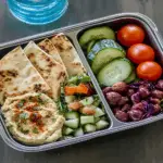 To boost the nutrition of your Hummus & Pita Bento Box Lunch, consider adding colorful vegetables like bell peppers, carrots, or celery sticks. You can also include a small portion of protein such as grilled chicken or chickpeas. grilled chicken option Using whole grain pita will increase fiber content, making your lunch not only tasty but filling and healthy.