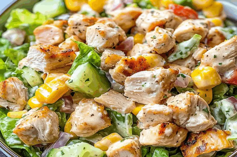 A Healthy Ranch Chicken Salad typically includes cooked and shredded chicken breast, fresh mixed greens, cherry tomatoes, cucumbers, and red onions. To enhance flavor, you can add avocado and corn. The salad dressing is crucial; a light ranch dressing made with Greek yogurt instead of mayonnaise keeps it healthy while adding creaminess. You can also include herbs like cilantro or parsley for an extra kick.