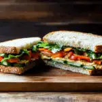 Absolutely! Preparing a Veggie & Hummus Sandwich in advance is easy and convenient. Simply spread hummus on your chosen bread and layer it with sliced veggies. To prevent sogginess, store the sandwich in an airtight container in the refrigerator until you’re ready to eat it. For best results, assemble it no more than a few hours before serving to keep everything fresh and crisp.