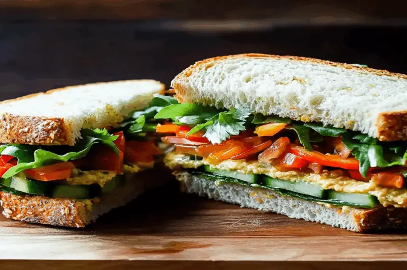 In conclusion, the Veggie & Hummus Sandwich is not only easy to make but also highly customizable and nutritious. With a variety of fresh vegetables and flavorful hummus, you can create a satisfying meal that fits any dietary needs. Whether enjoyed at home or packed for lunch on-the-go, this sandwich offers great taste without compromising health benefits. Embrace creativity by experimenting with different ingredients to craft your perfect version of this delightful dish!
