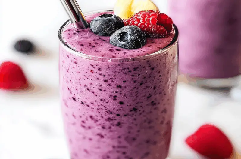 Revitalize your mornings with this Berry Blast Protein Smoothie, a vibrant and refreshing blend of mixed berries, Greek yogurt, and banana. Packed with protein and antioxidants, this energizing drink is perfect for quick breakfasts or post-workout fuel. Enjoy its creamy texture and customizable flavors to kickstart your day while delighting your taste buds.