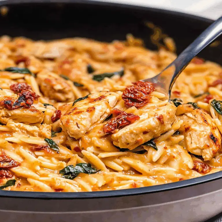 Creamy Sun-Dried Tomato Chicken Orzo is a delightful, one-pan dish that brings together tender chicken, rich cream, and tangy sun-dried tomatoes with perfectly cooked orzo. This comforting meal is not only quick to prepare but also visually stunning, making it perfect for both busy weeknights and dinner parties. Each bite is an explosion of flavor that will leave your family and friends asking for seconds.