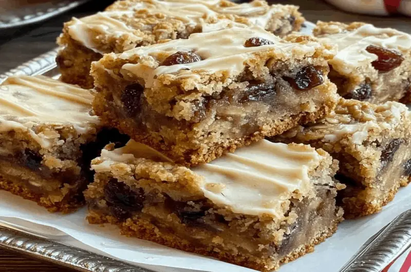 - These oatmeal-raisin cookie bars are a delightful blend of chewy oats and sweet raisins, making them the perfect snack or dessert.