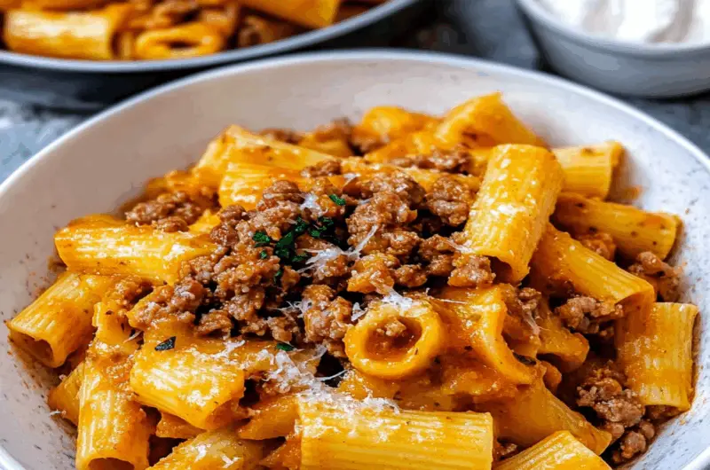 The aroma of pumpkin wafts through the air, mingling with the savory scent of ground sausage, creating a symphony that dances in your nose. This is not just any pasta; it’s a celebration on a plate, perfect for those crisp autumn evenings when you want something comforting yet exciting.