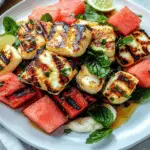Grilled Halloumi Watermelon Salad is a vibrant and refreshing dish that perfectly captures the essence of summer. This delightful salad combines the sweet juiciness of ripe watermelon with the salty richness of grilled halloumi cheese, nestled on a bed of mixed greens. Drizzled with olive oil and balsamic vinegar, it’s an explosion of flavors and textures that will impress your guests at any picnic or barbecue. Quick to prepare and visually stunning, this salad makes for a light meal or a beautiful side dish.